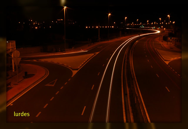 Con el profesor de fotografía fuimos a hacer fotos nocturnas y desde lo alto de una pasarela de la carretera esto es lo que fotografiamos.....